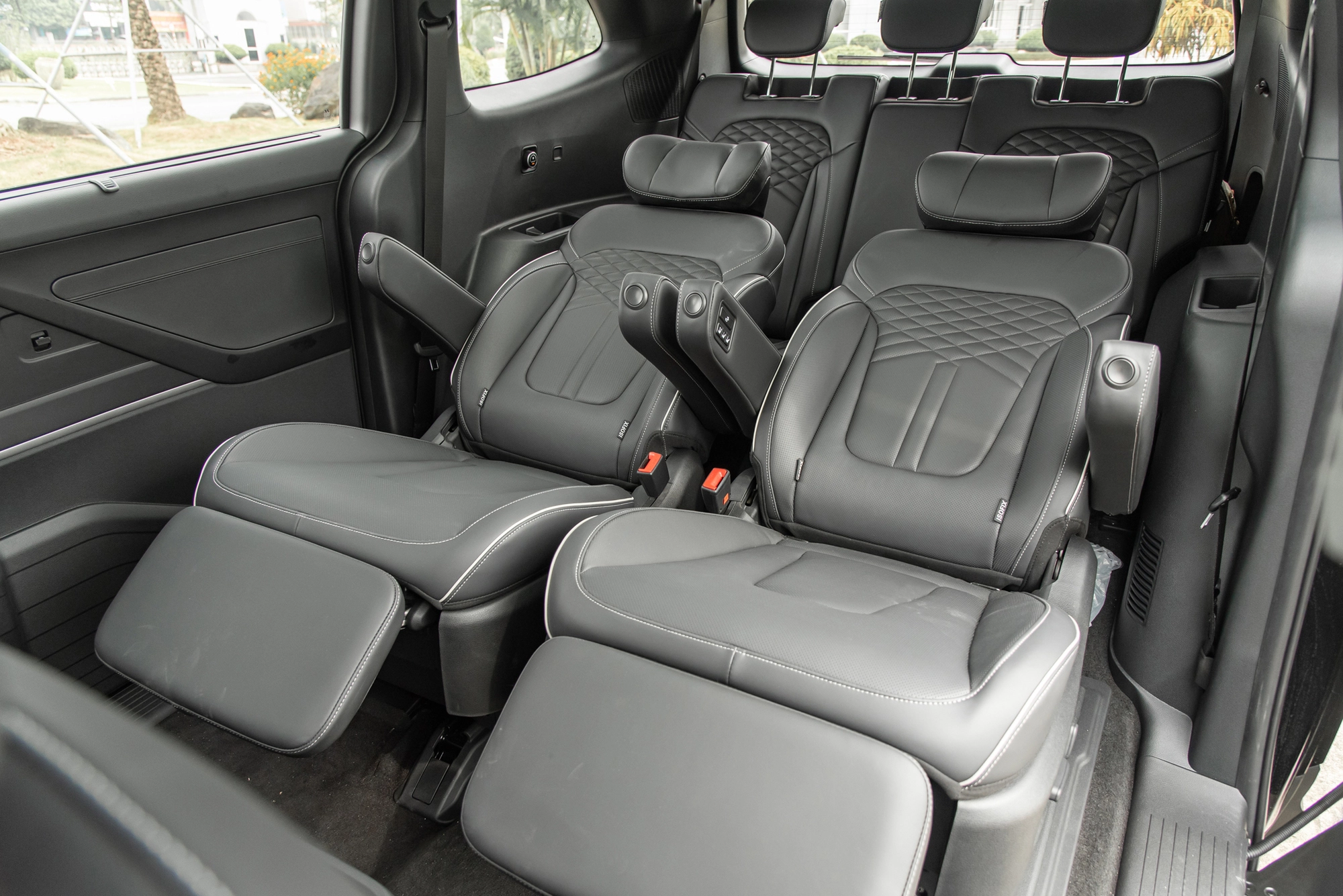 Ngoài ra, hàng ghế thứ hai cũng có thể gấp gọn để mở rộng khoang hành lý, và tích hợp nhiều tiện ích như 2 cổng sạc USB, sạc không dây, cửa gió điều hòa và bàn làm việc gấp gọn. Hàng ghế thứ ba Hyundai Custin cũng có thiết kế rộng rãi và đủ chỗ cho 3 hành khách. Hàng ghế này cũng có thể gập gọn theo tỷ lệ 60:40 để mở rộng khoang hành lý.